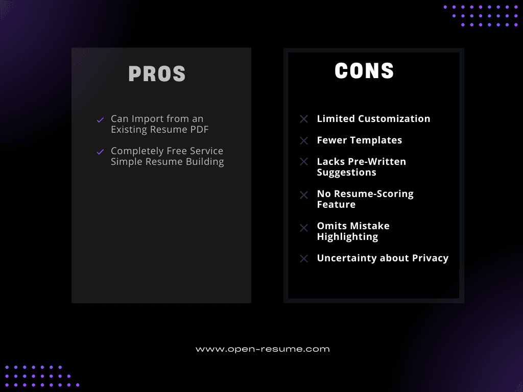 Ideally, a resume builder should offer a range of customization options. This will enable you to create a resume and tailor every section that reflects your unique skills and experiences and the specific requirements of the job you are targeting. Such options can include different font and colour choices, the capability to add and rearrange sections, and tools for incorporating visuals like graphs or charts. A highly customizable resume builder gives you the freedom to create a resume that truly represents you.#6. Privacy and Security