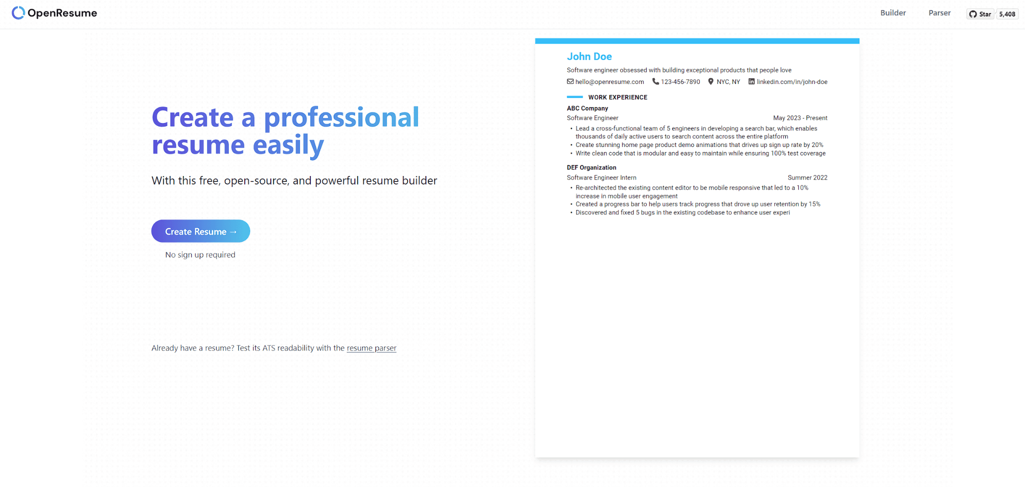 OpenResume is a good platform democratizing access to modern, professional resume designs. It provides job seekers with an intuitive resume builder that simplifies the creation process. Prioritizing accessibility and security, OpenResume aligns its core sections with U.S. best practices.All data is securely stored in the user's browser, enabling complete control over personal information without the need for email sign-ups. Users can also import existing resume PDFs, enhancing the platform's versatility.The goal of OpenResume is to provide everyone with free access to a modern professional resume design, fostering confidence in job applications.