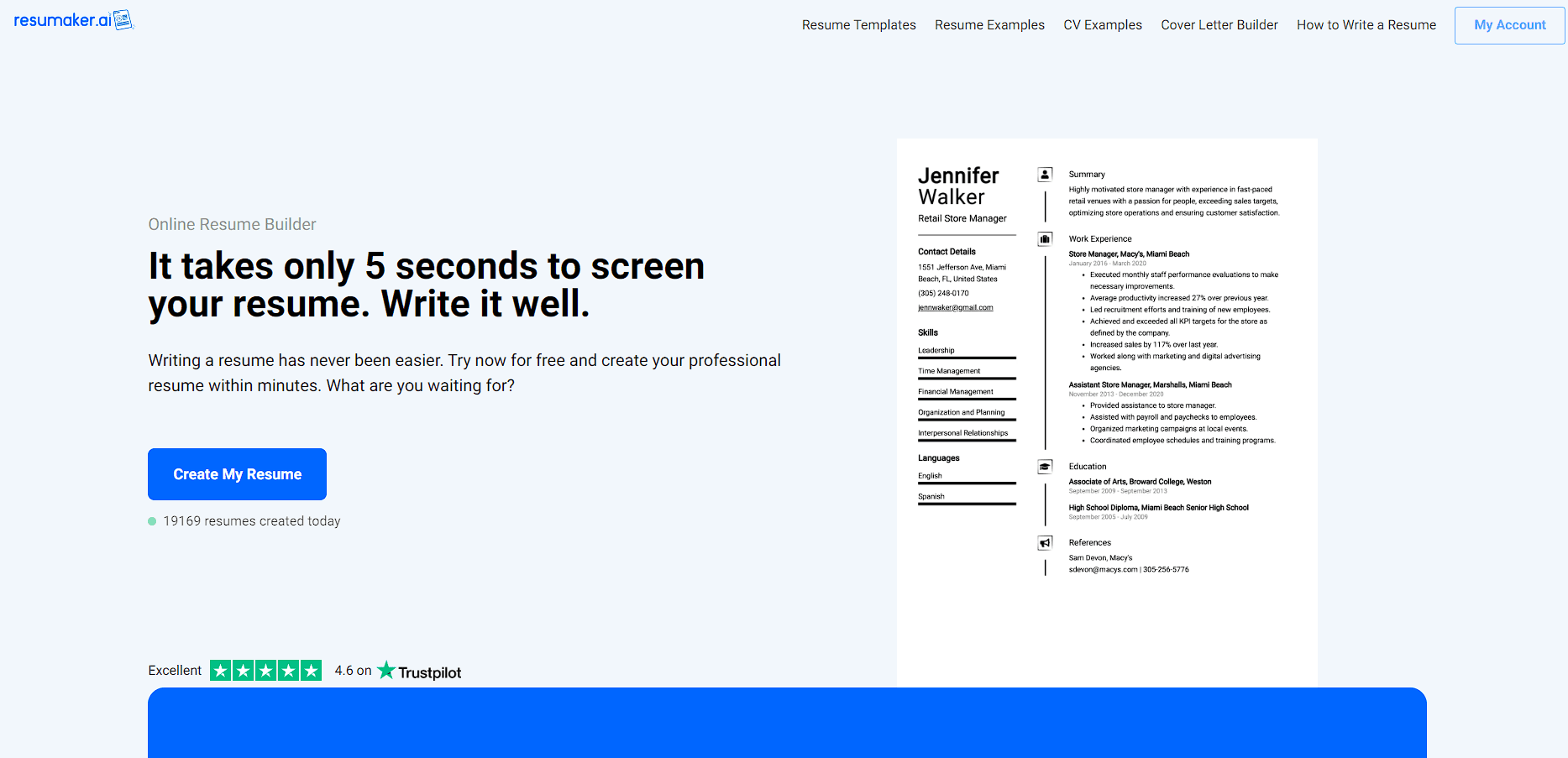 Resume.io is another comprehensive platform designed to facilitate your career progression. Beyond resume building, it offers a wealth of features aimed at streamlining the job application process. The selection of professional templates and an automatic spell-checker work together to simplify the creation of standout resumes and minimize errors. Leveraging advanced AI technology, the platform also provides bespoke resumes and cover letters tailored to your specific needs. Additional features like keyword optimization or real-time feedback to enhance the quality and effectiveness of your resume.