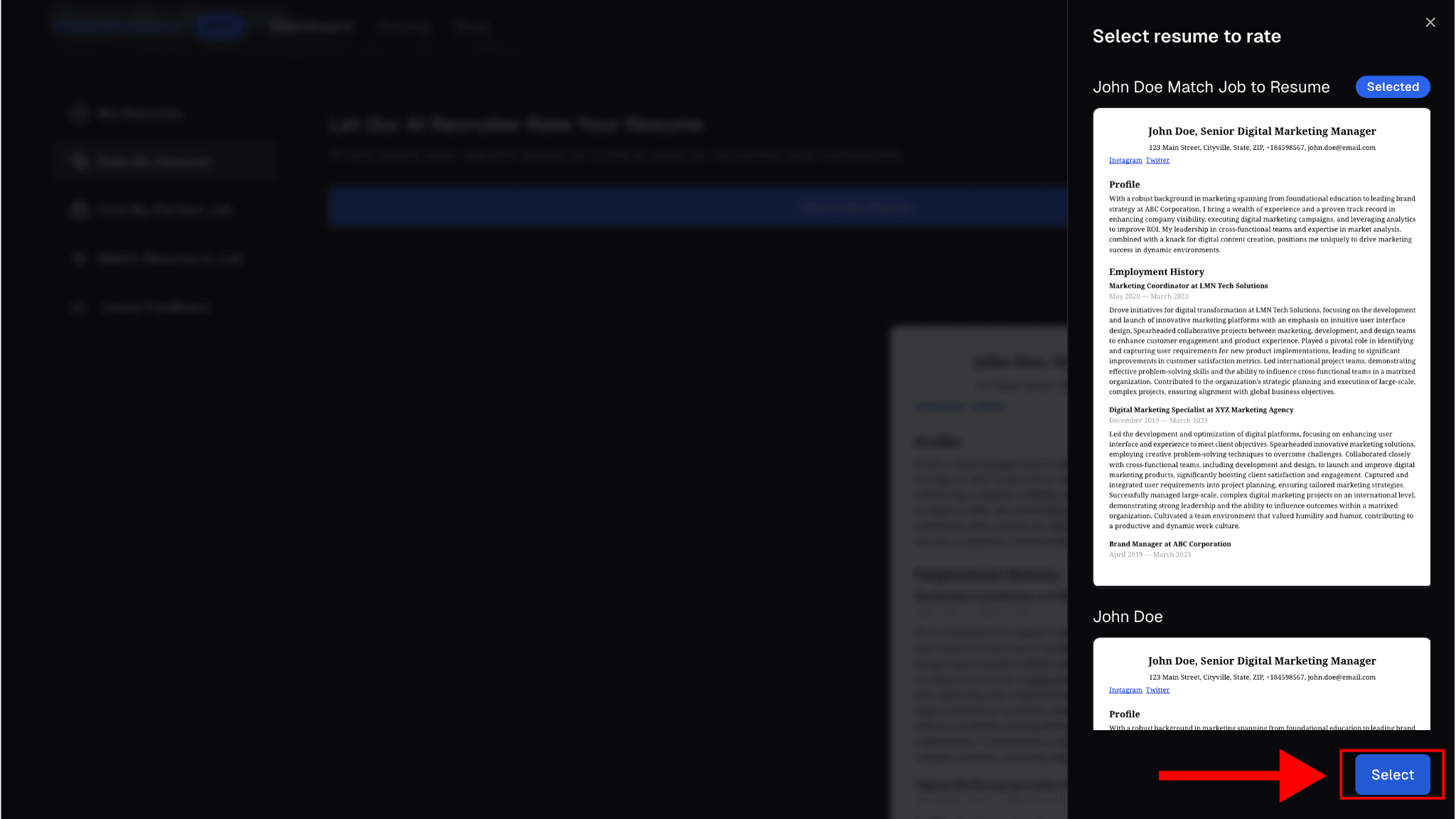 Step 2: Generate Rating or Select Your Resume