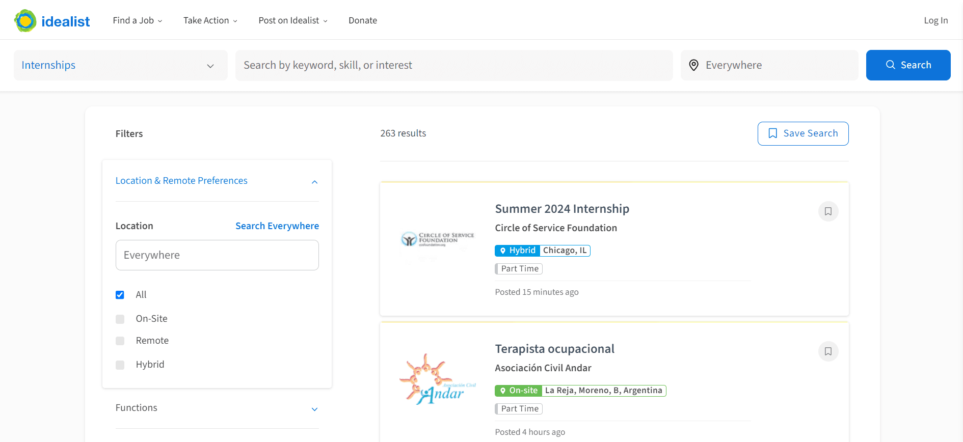 Idealist is a distinguished platform specifically tailored for those seeking internships, jobs, and volunteer opportunities in the non-profit sector. Its services range from internships and job listings to volunteer roles, catering to individuals passionate about social and development sectors. Run as a non-profit itself, Idealist maintains a global network of over 130,000 organizations and lists internships from numerous organizations worldwide. The site currently lists more than 2,000 internships worldwide, creating an expansive pool of opportunities for those passionate about contributing to the greater good. Idealist allows applicants to filter internship listings by location, compensation, language, organization type, and issue area, providing a tailored search to align with individual interests and requirements. This serves as a valuable resource for students interested in the nonprofit and public policy fields, as well as those dedicated to making a difference through causes such as environmental sustainability, human rights, and education reform.