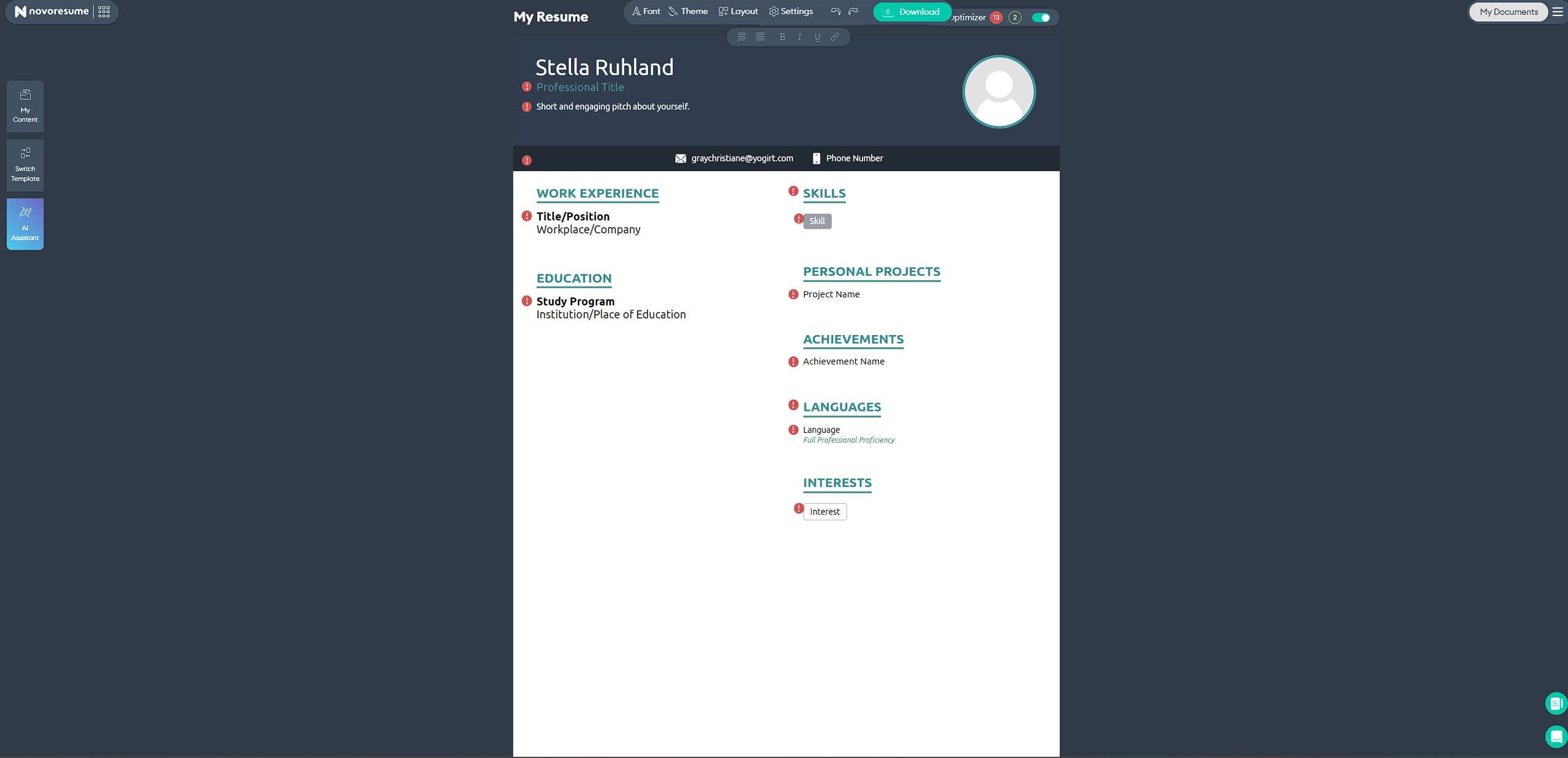 Novoresume is a highly-regarded, user-friendly AI resume builder that aids job seekers in creating impressive resumes to enhance their employment opportunities. It comes with modifiable templates, tools for creating cover letters, and an AI that optimizes content, providing a novel way to build resumes. With Novoresume, you can create visually stunning CVs and resumes that differentiate you in the aggressive job market thanks to a variety of templates and suggestions for industry-related keywords. These professionally worded and aesthetically pleasing resumes are not only more technical but also stress your specific industry skills. While Novoresume may not create content for your resume, it offers the platform and tools necessary for you to write appealing content that showcases your skills and experiences. You can have a standout resume that highlights your distinct profile and abilities in just a few minutes.Pros: