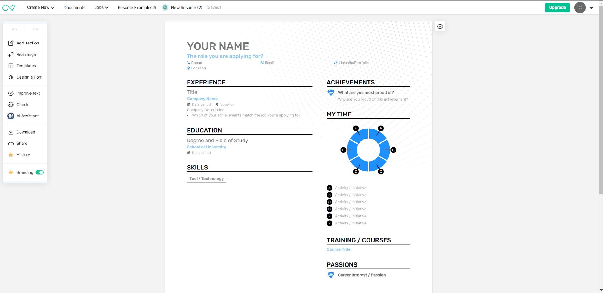 - Must upgrade to Pro to download a resume without Enhancv branding