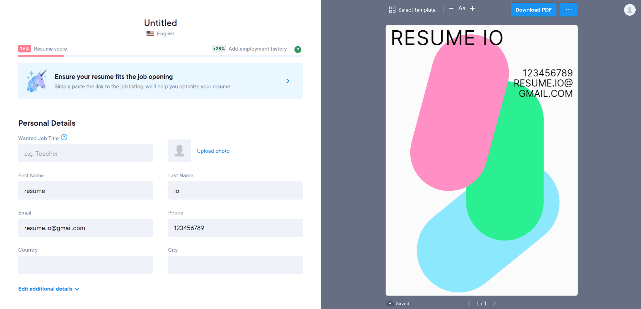 Resume.io is a resume builder renowned for its extensive features tailored to create professional and strategically targeted resumes. With its intuitive interface and customizable templates designed for various industries. The platform's drag-and-drop editor further streamlines the process, ensuring swift customization. From keyword optimization to real-time feedback, Resume.io offers comprehensive tools to enhance your resume's quality and effectiveness, making it a standout choice for job seekers aiming to impress potential employers and secure their dream job.Pros: