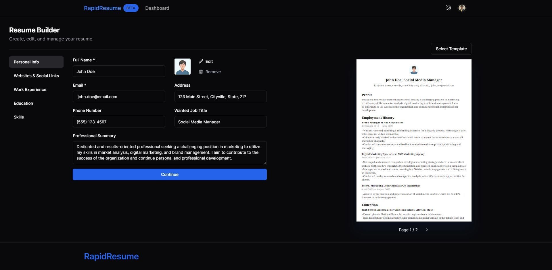 Rapid Resume is an AI-powered resume builder that revolutionizes the way job seekers approach resume writing. With its advanced technology, Rapid Resume offers a fast, user-friendly experience that simplifies the resume creation process. The process is 10 times faster than the competition, ensuring that you can move quickly without sacrificing quality. With the speed and efficiency of AI, Rapid Resume is here to ensure that building your professional resume not only aligns with your career goals but is also more effective than ever before.The platform stands out due to its capacity to offer personalized content suggestions powered by advanced AI technology. This ensures that your resume aligns with your desired role and skillset. Besides, Rapid Resume is highly effective in optimizing resumes for Applicant Tracking Systems (ATS), thereby improving your likelihood of being noticed by potential employers.Pros: